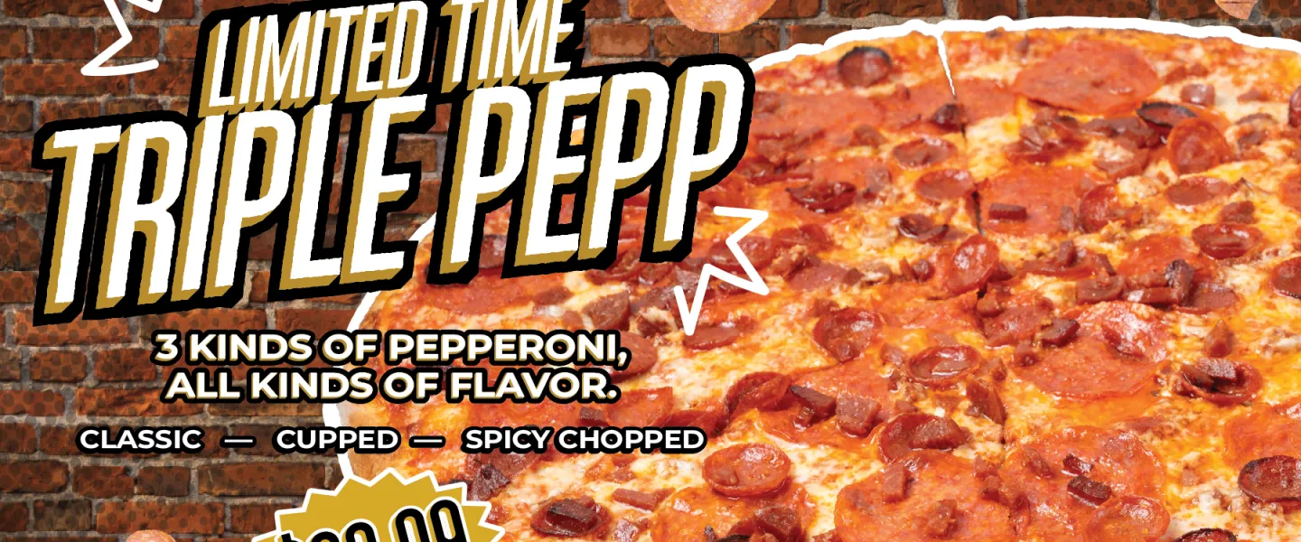 The new Triple Pepp is layered with three styles of pepperoni for bold flavor, crispy texture, and classic appeal. Built on our signature New York-style crust, it’s topped with premium Grande mozzarella and our house-made marinara. Get it while it lasts! This limited time offer melts away on 12/31