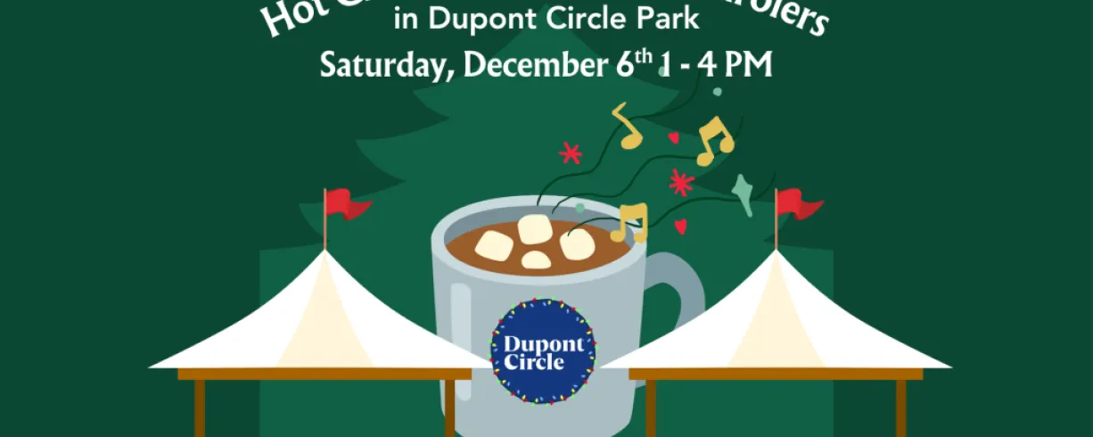 Enjoy sips of free hot chocolate provided by Teaism as well as live holiday carolers singing in the Circle! On Saturday, December 6th from 1 to 4 PM, the Dupont Circle BID will be set up in Dupont Circle Park at a tent giving away hot chocolate while supplies last for free to sip while you listen to live holiday carolers and shop at the holiday markets around the neighborhood.