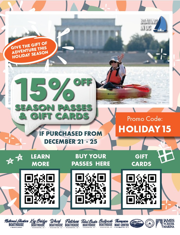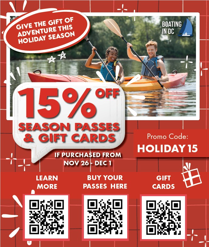 Enjoy kayaking, canoeing and stand up paddleboarding at Key Bridge Boathouse. Experience the tranquility of floating on the water combined with breathtaking views of DC's monuments, Teddy Roosevelt Island's wildlife and the Georgetown Waterfront.