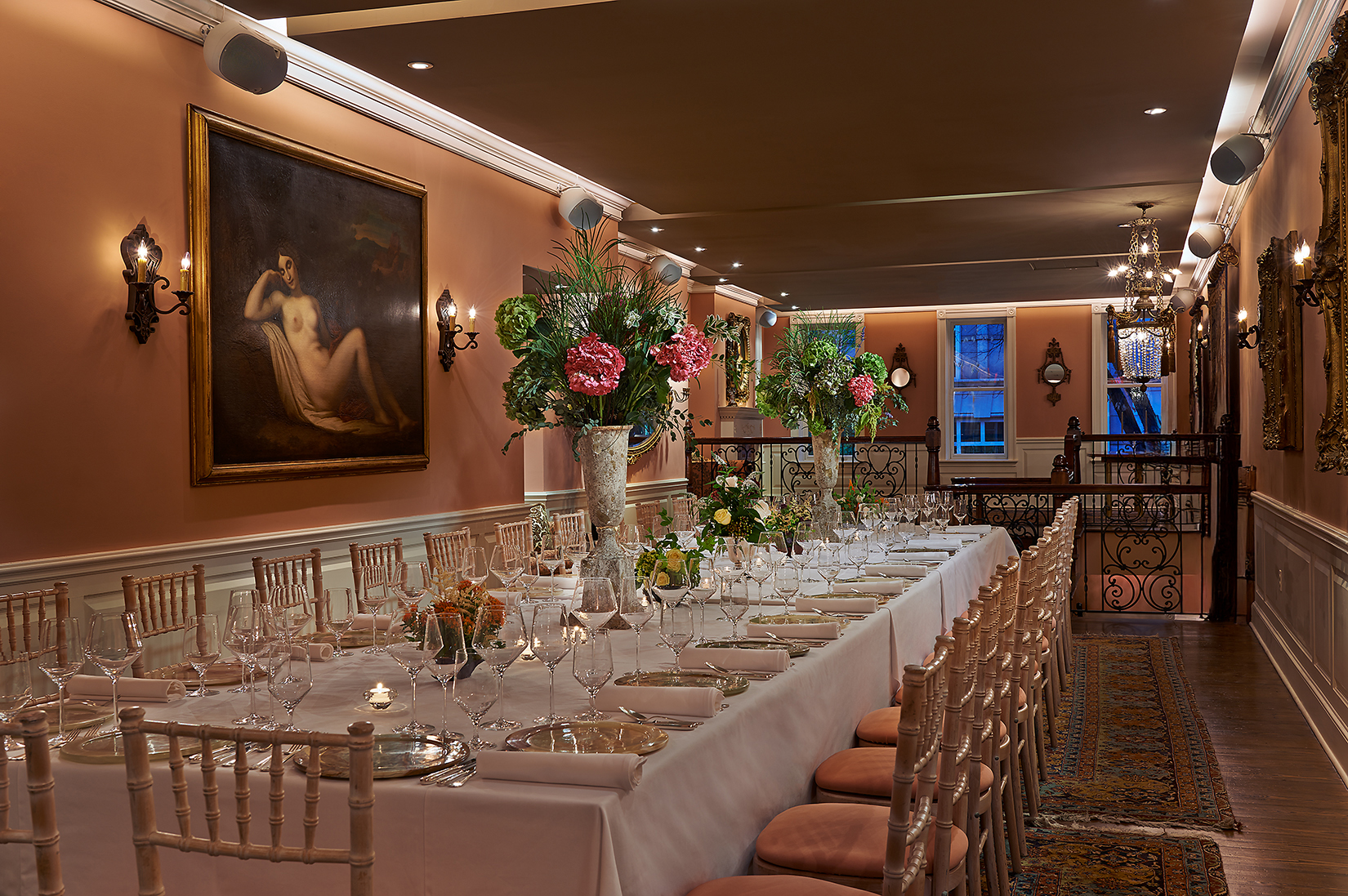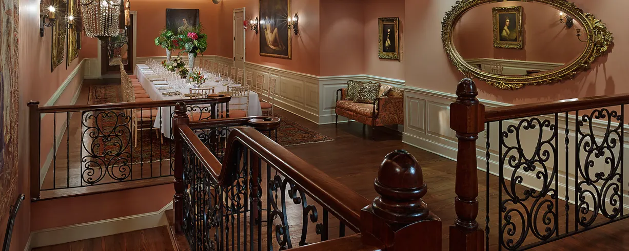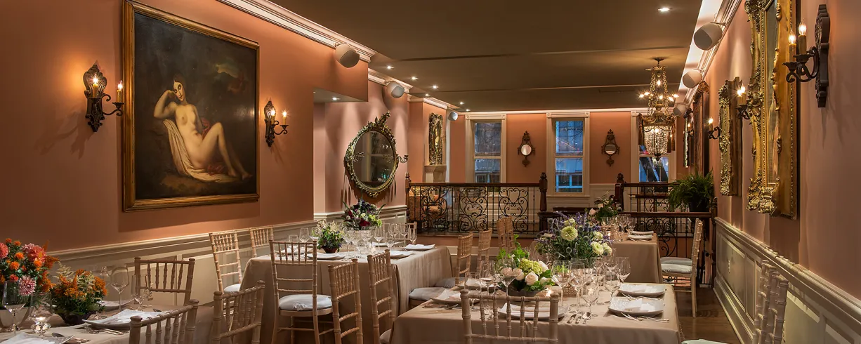 Elegant townhouse venue with no room fee, full-service catering, fine dining service, and customizable event space for up to 120 guests.